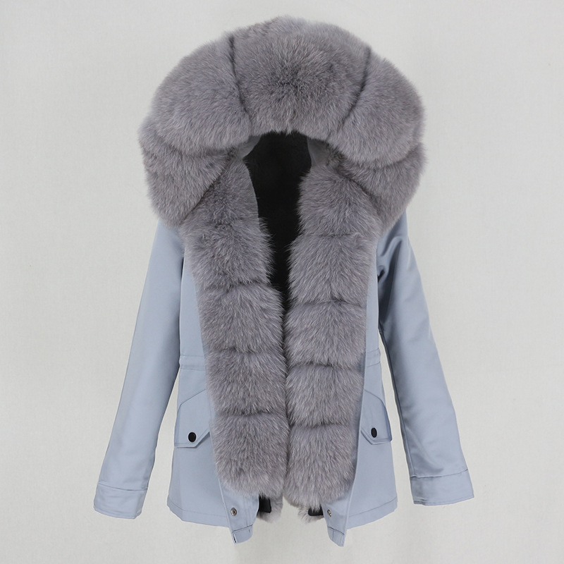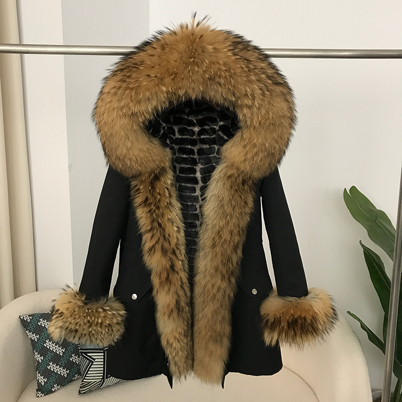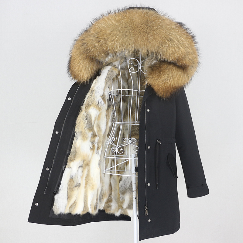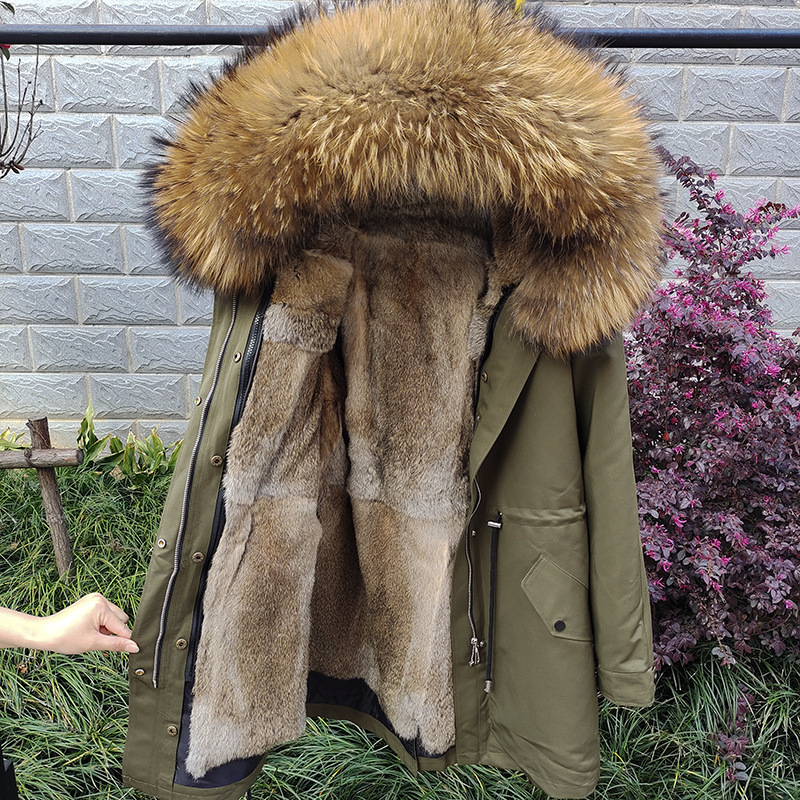 国境を越えた対外貿易金のパーカー服の毛皮のコートの女性の新型の帽子はウサギの毛の内胆を取り外して保温コートを厚くすることができます。