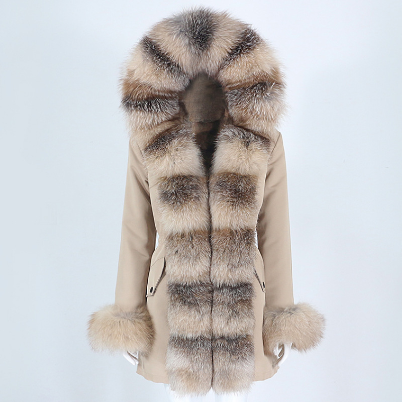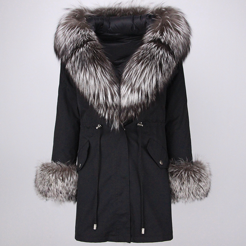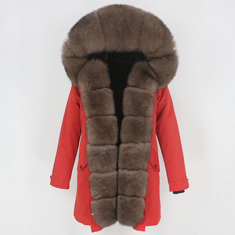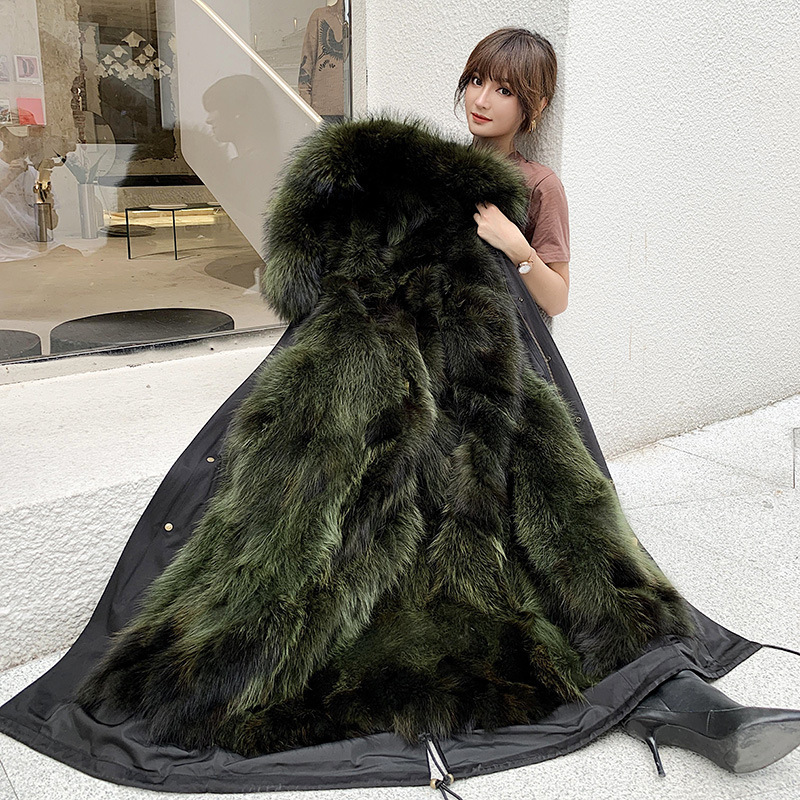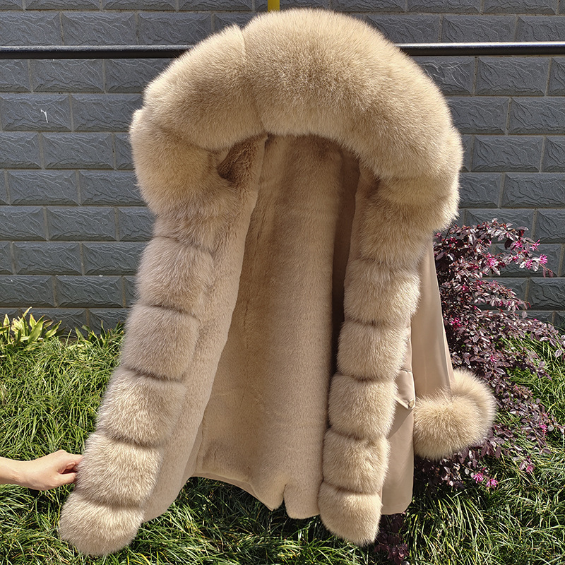 2024新型パーカーはキツネの毛の内胆を厚くして、本物のキツネの毛の大きい毛の襟のジャケットの毛皮のコートを取り外します。