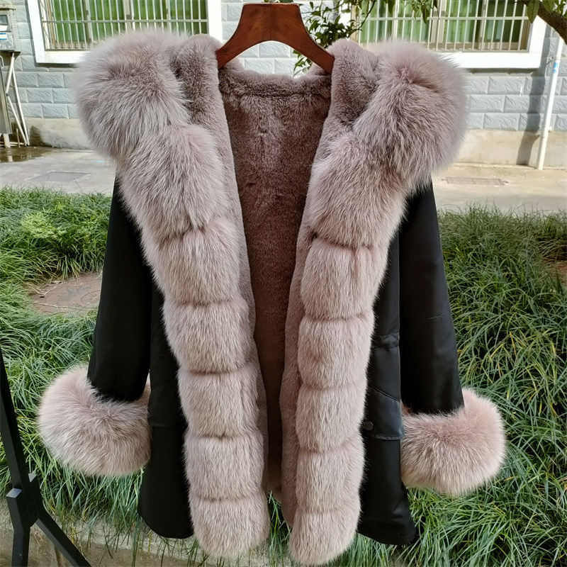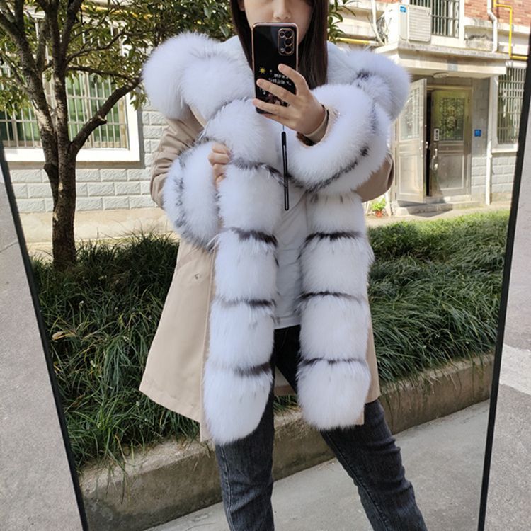 クロスボーダーの人気女性のミディアムパーカーコートの超大型キツネ毛ファッション保温コートは内胆を取り外します。