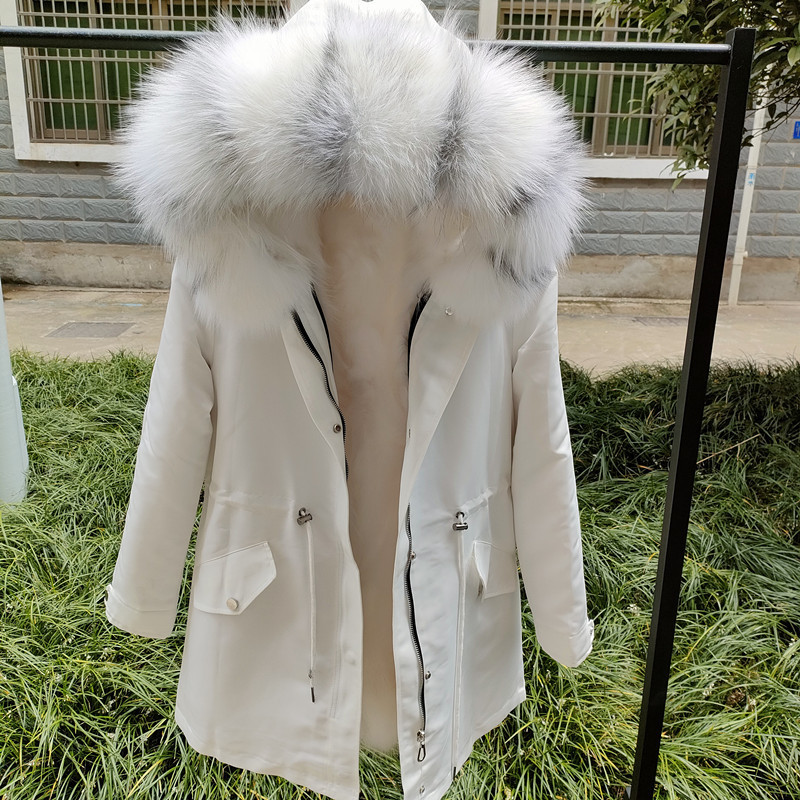 パーカー服の女性の中の長いタイプの若い超巨大な10子の狐の毛の襟は白いタヌキの毛の内の胆の毛皮のコートを取り外します。