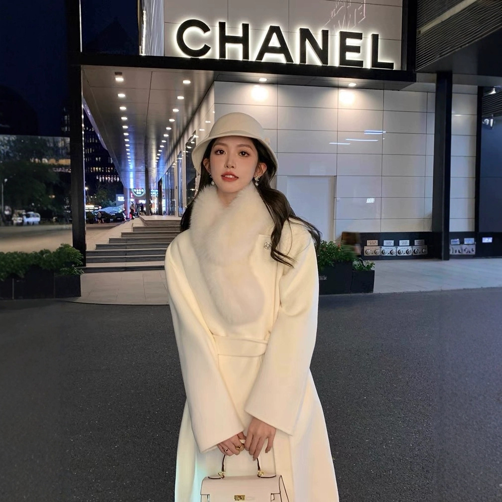 留洋千金2024冬の新型両面カシミヤコートの女性プラスの毛は高級な白い毛皮のコートです。