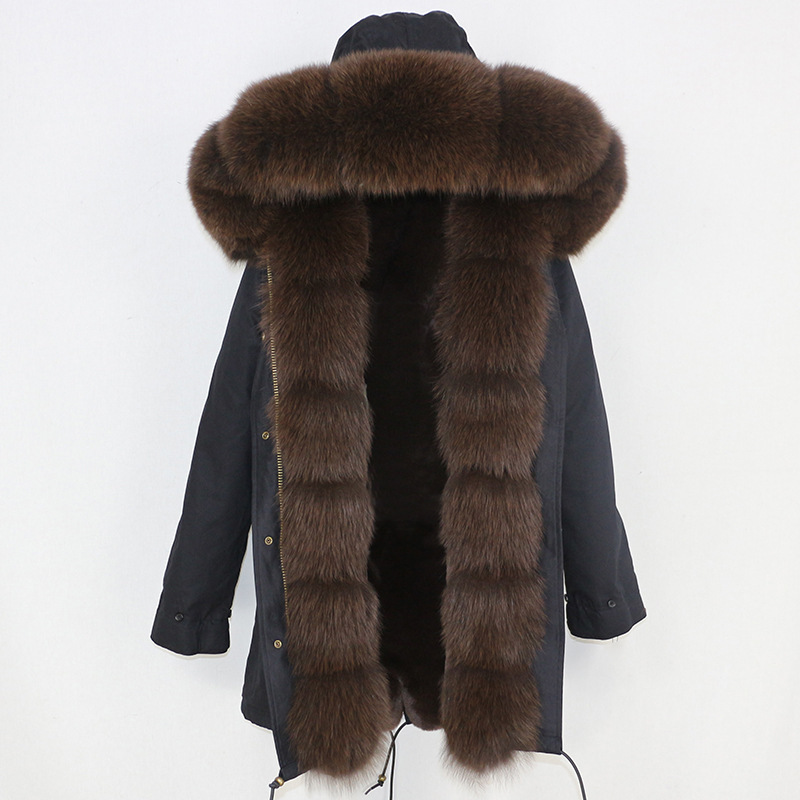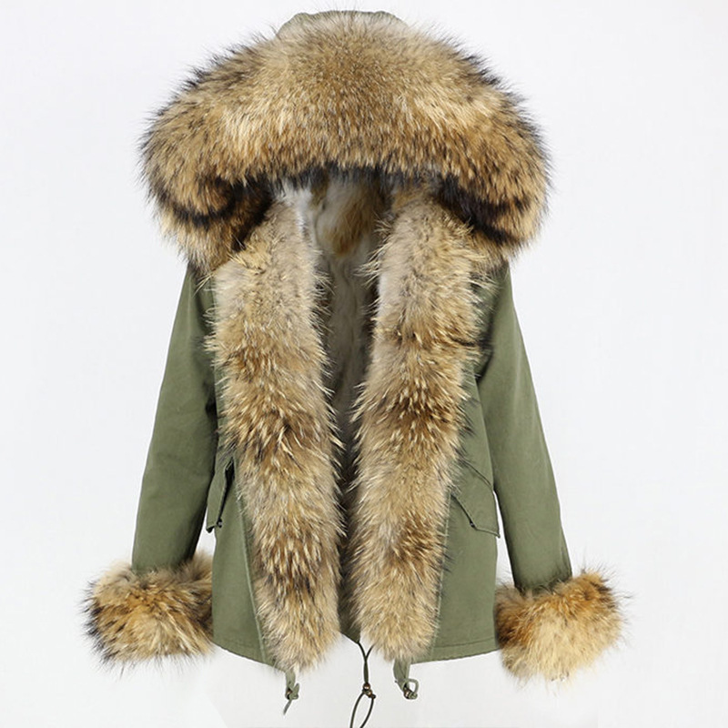2023新型の取り外し可能な厚い人工毛内胆天然タヌキ毛狐毛襟女性パーカー保温コート