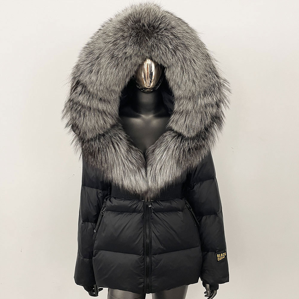 2024新型冬贅沢高級毛皮コート女性天然帽子真狐毛襟白鴨ダウンジャケット