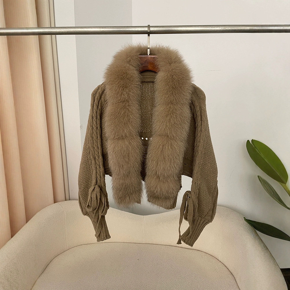 国境を越えた電気商2023の新しい秋のニットのキツネ毛皮のカーディガンのニットキツネ毛皮のコートの女性
