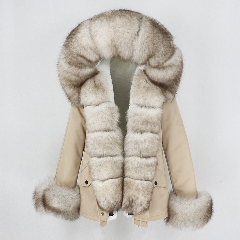 国境を越えて販売された2024秋冬の新型はキツネの毛襟の短いファッション保温パーカー服の毛皮のコートを取り外すことができる