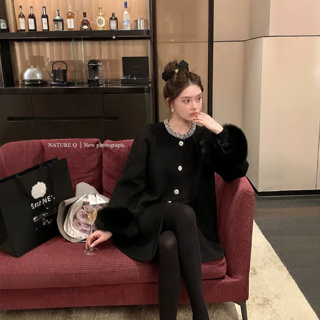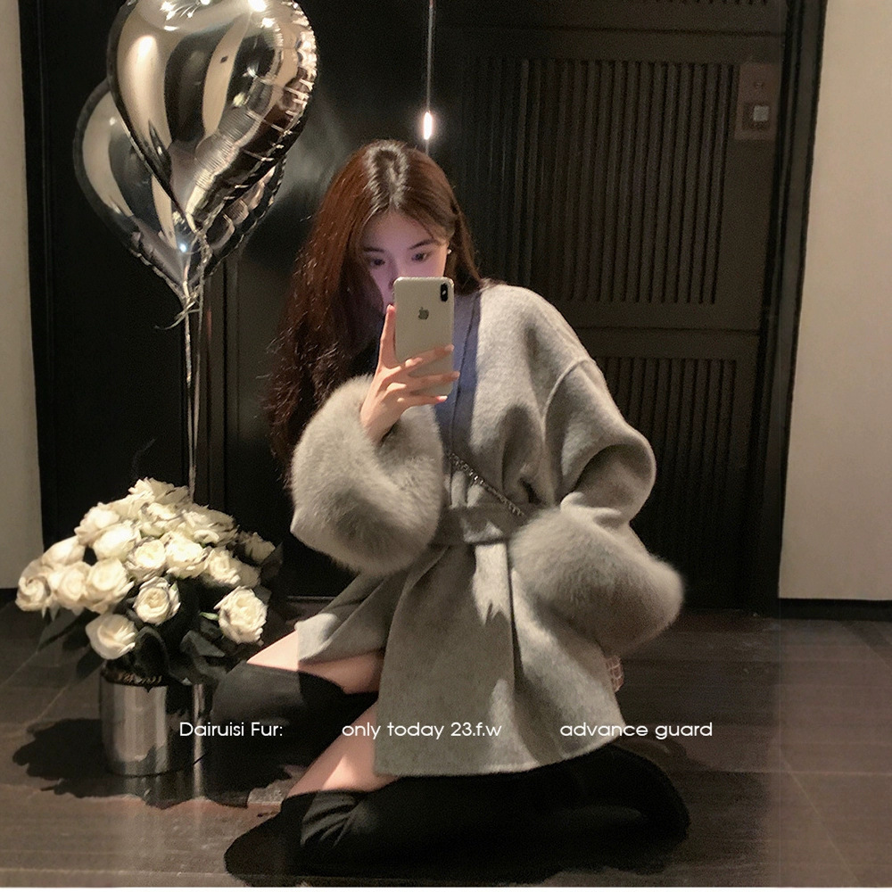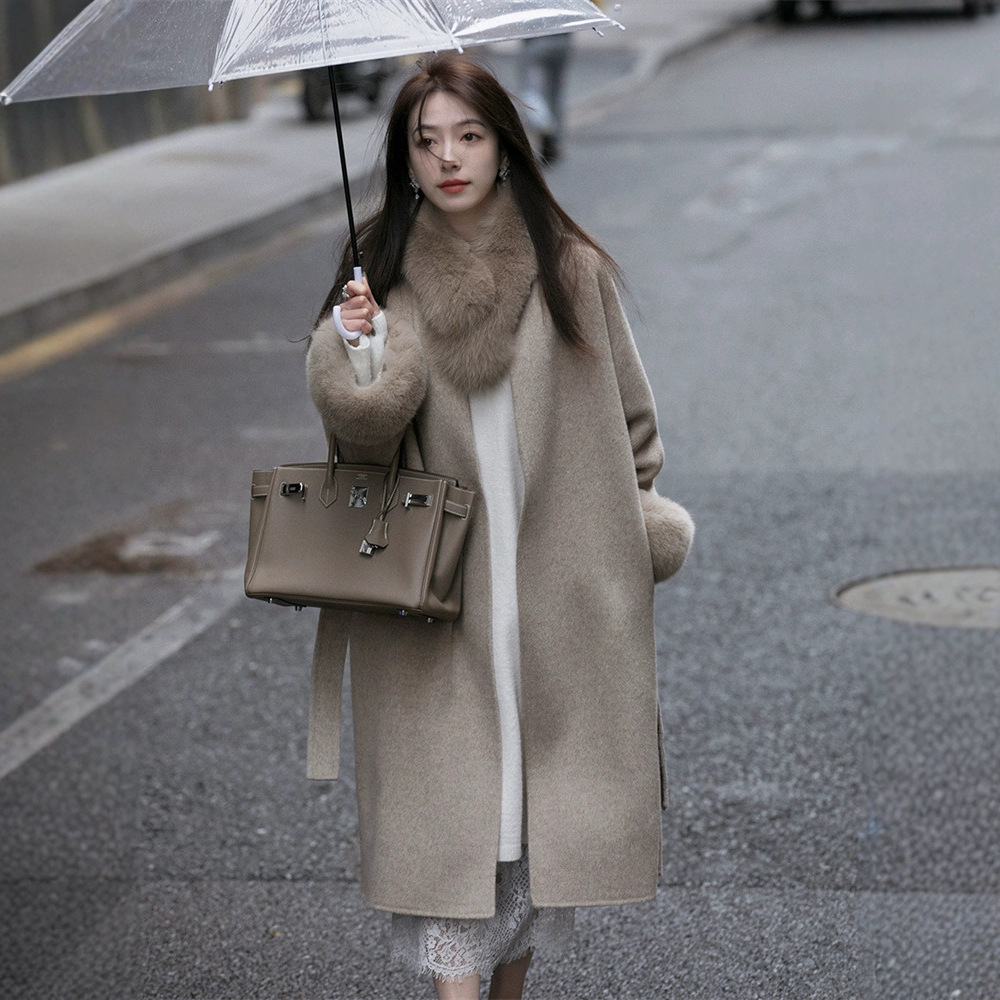 秋冬の新型の韓国系の玉の高級感のキツネの毛の両面のカシミヤのコートの女性のウールは富家の千金のコートです。