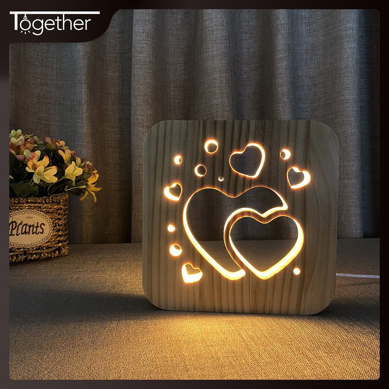 ケヤキ台座3d小夜灯会社ロゴ彫刻イベントプレゼントusbスタンドクリエイティブled寝室ベッドサイドランプ