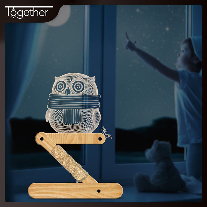 実木折り畳み小夜灯創意フクロウ木ヘッドライトは新型の3dアクリルランプを畳んでいます。