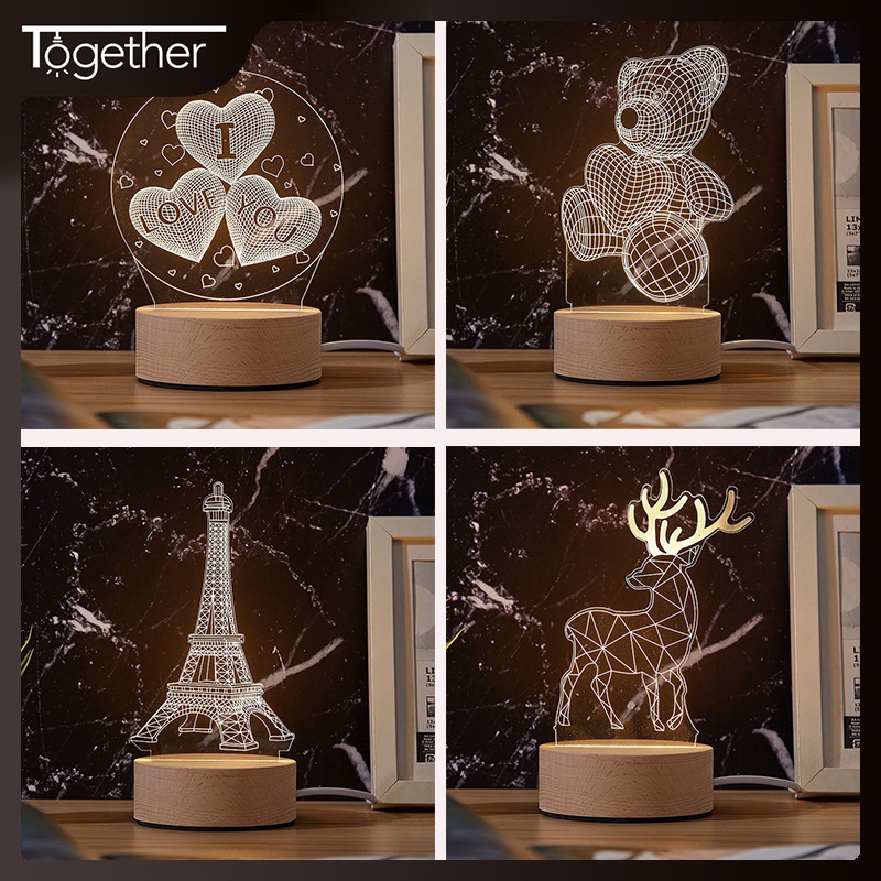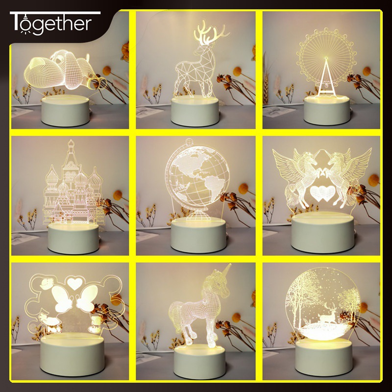 新しいアイデア3d小夜灯寝室ベッドサイドledライトイベントプレゼント彫刻ロゴアクリル文創灯