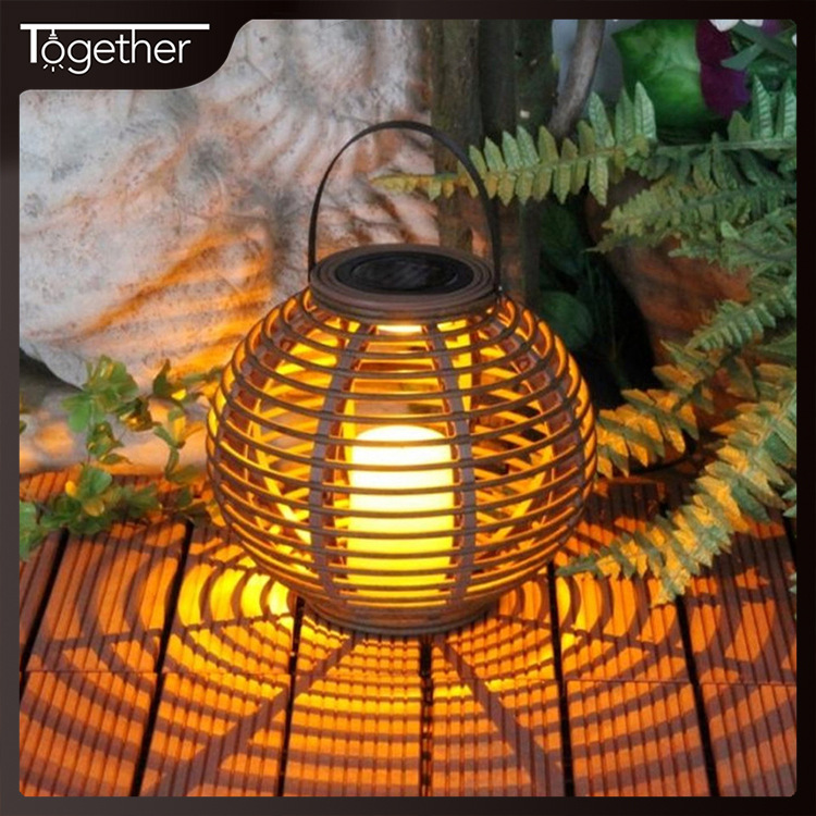 新型装飾投影鉄芸灰色藤編円形提灯ベランダ雰囲気太陽エネルギー庭園灯