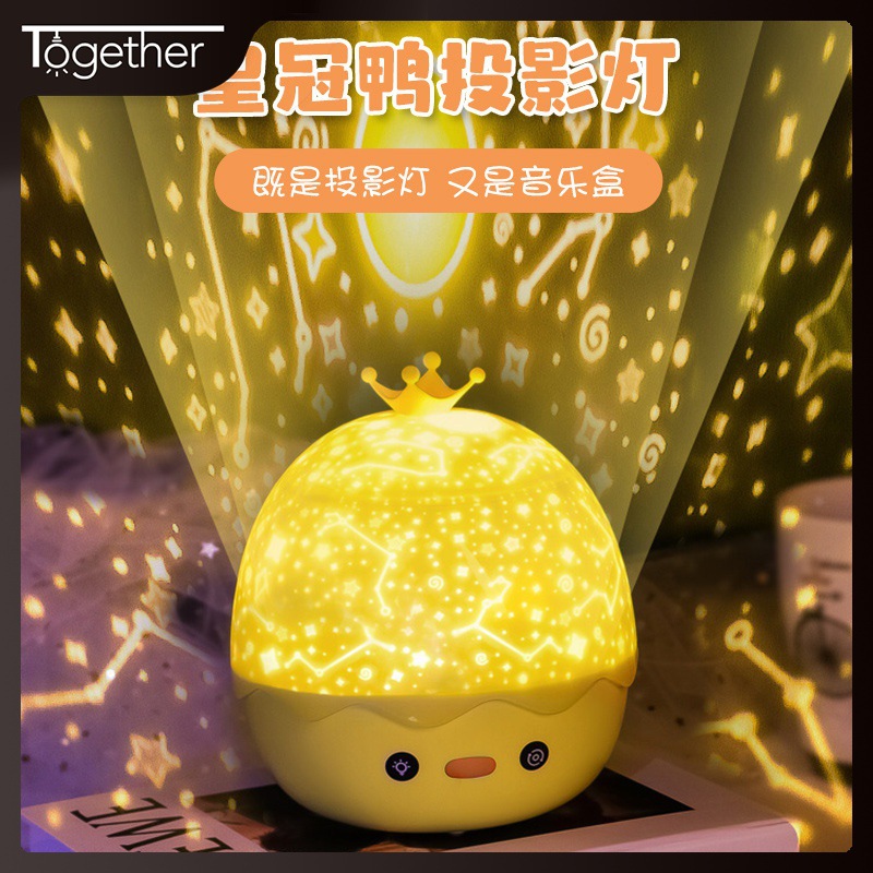 クラウン鴨星空灯回転投影灯七色充電リモコンbluetooth音響児童音楽七色小夜灯