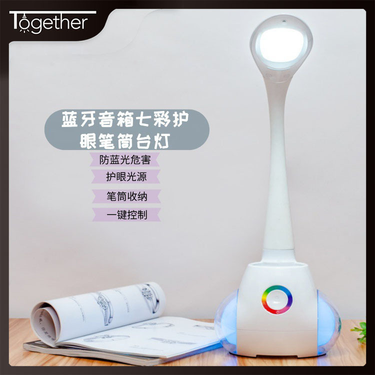 メーカー直販新奇特充挿し両用筆筒電気スタンドタッチ多機能bluetoothスピーカー七彩小夜灯