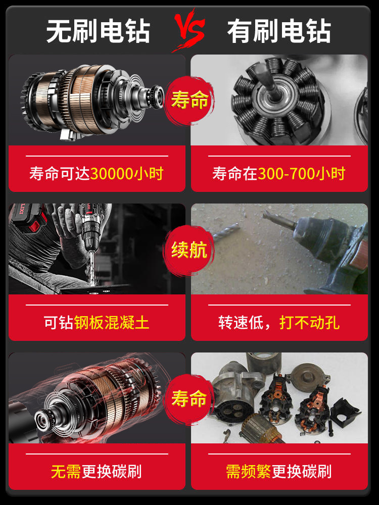 ブラシレスドリルリチウム電池衝撃充電式ドリル家庭用電動工具ドライバー