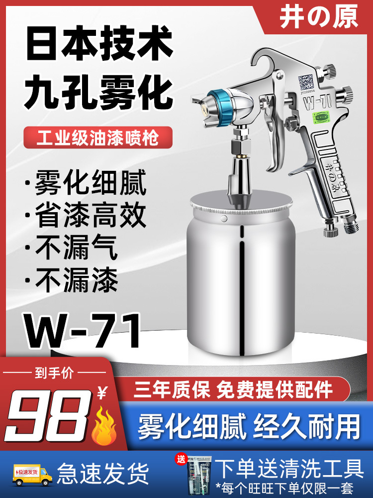 日本井原W-71自動車ペンキスプレー塗装ポットw77エアツール高霧化スプレーポット塗装