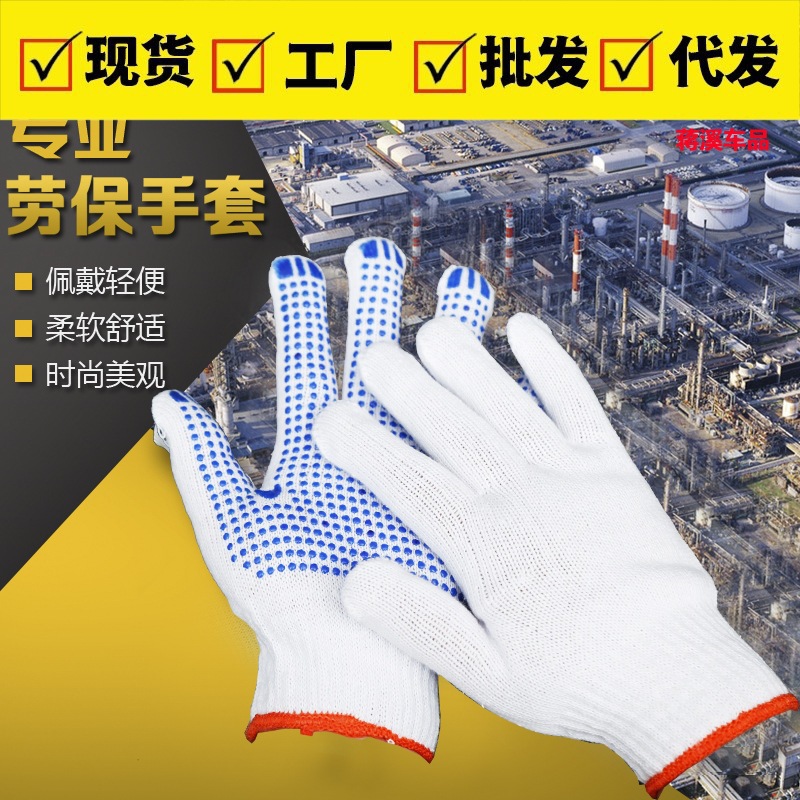 点塑性手袋滑り止め耐摩耗性労働保護綿糸ビーズ塗装pvc防護作業漂白糸手袋卸売り