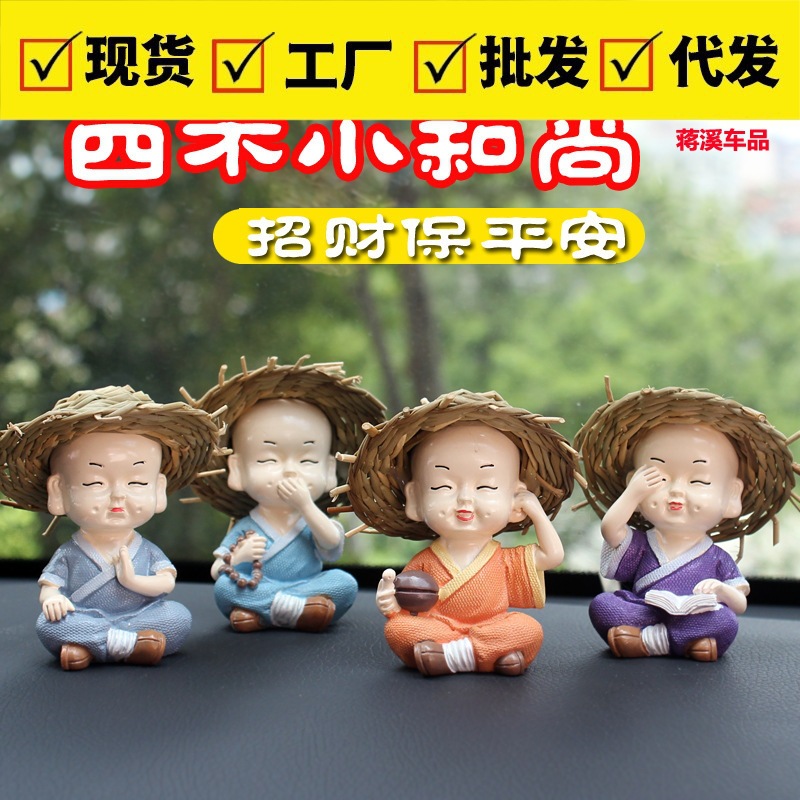 創意的な自動車の置物の車の麦わら帽子の小僧の五路の財神の車の上で四不和尚は花を飾って飾って飾っています。