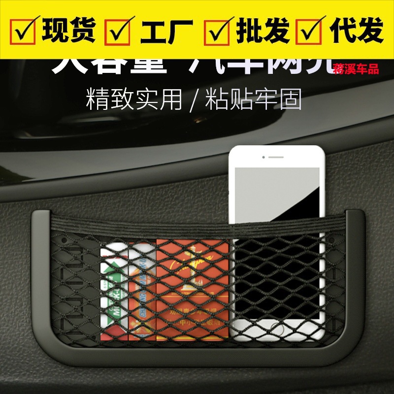 車のネットのポケットの荷物袋の携帯電話の掛け袋の車内の収納物の通用のマジックテープの多機能車用の小さいネットのポケット