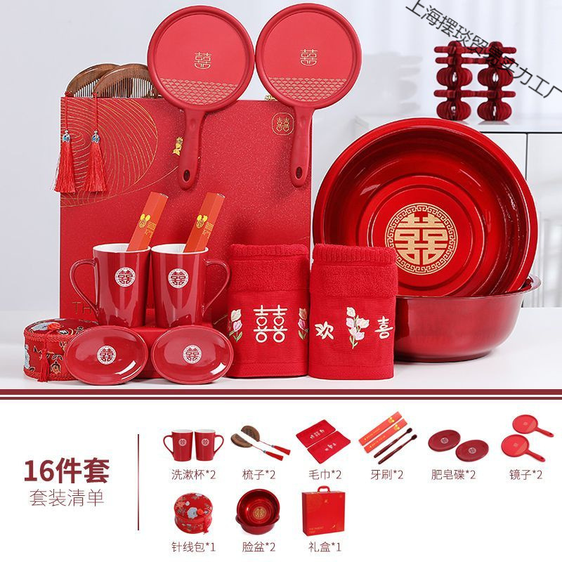 赤い結婚式の洗面器大セット女性の結婚式の洗面器洗面器花嫁の嫁入りペアギフトボックス