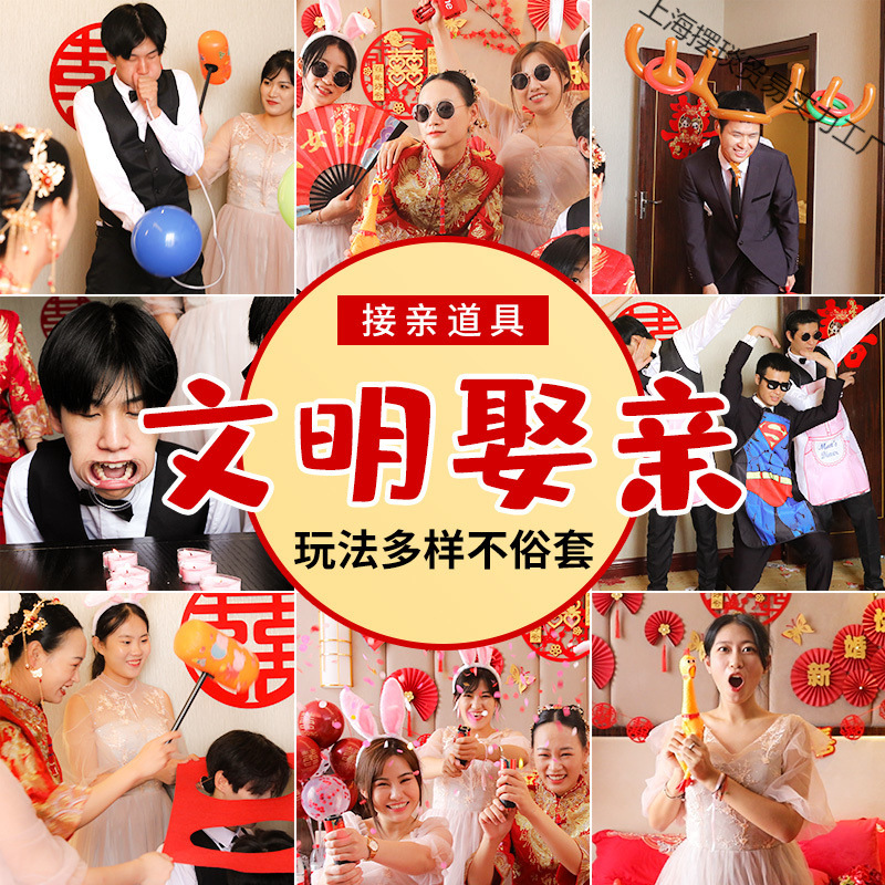狂ったようにキスをします。結婚式のアイデアは一連の道具をふさいでいます。
