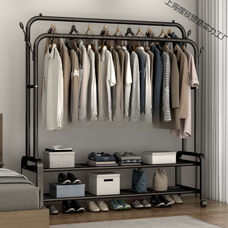 極厚二本ポール移動寮コートラック極厚コートラック床置き縦型家庭用寝室バルコニー洋服ラックシンプル