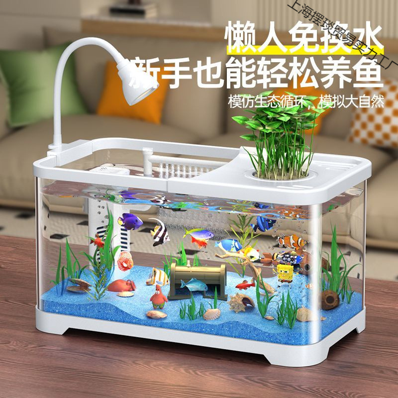 水槽、水族館、リビングルーム、バルコニー、家庭用中小型自己循環怠惰な水交換不要の生態プラスチック金魚水槽