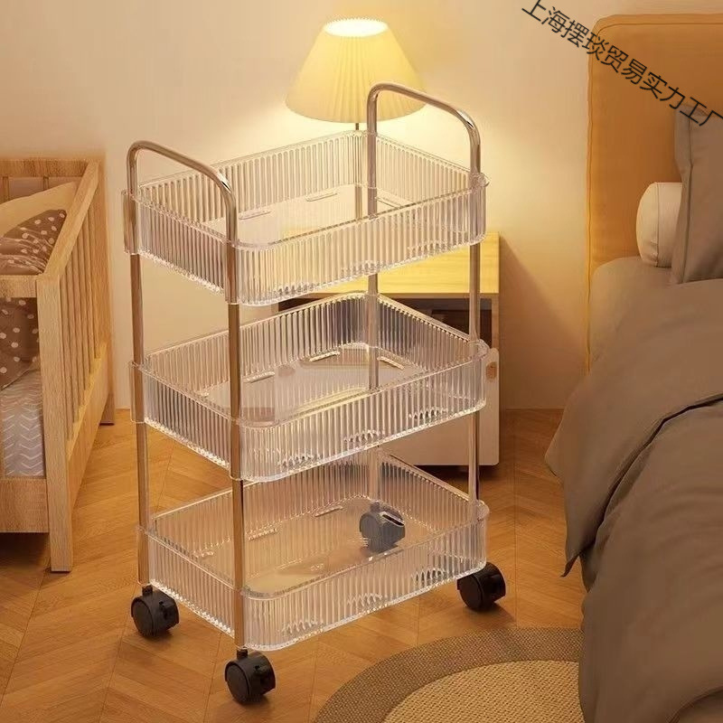 透明アクリルトロリー収納ラックベッドサイド床置き本棚多層モバイルスナック化粧品収納ラック