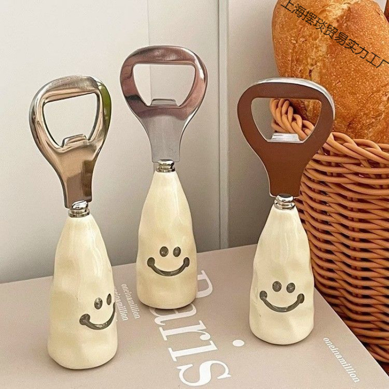 かわいい笑顔のビール栓抜き、セラミックハンドル、自立型ワインボトルオープナー、クリエイティブなステンレス製の蓋開けツール