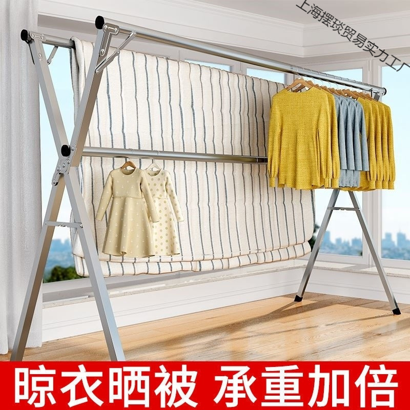ステンレスラック床置き折りたたみ屋内外干しハンガーダブルバーバルコニーハンガーx型伸縮物干しバー