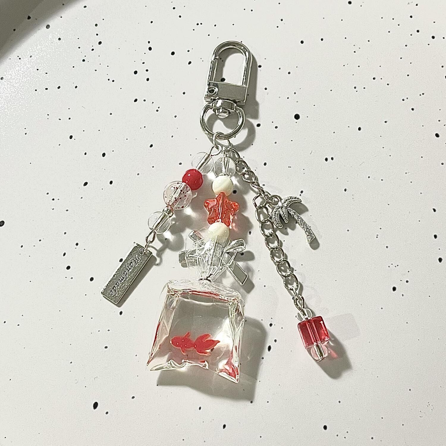 【赤い魚の袋のココナッツの木】手作りの数珠の自作の少女の心は簡単です。