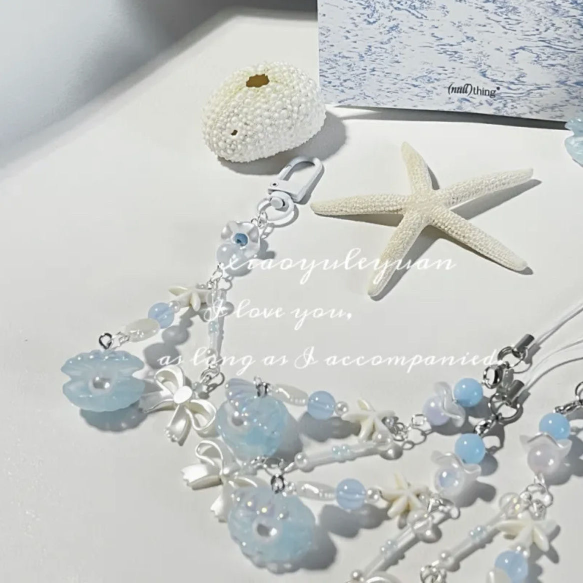 【青い貝殻】手作りビーズ青い海の伝説インスタ風キーホルダーバッグカメラチェーンペンダント