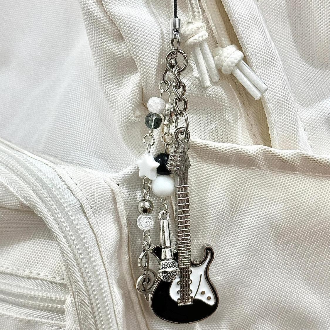 【猫かわいいギター】手作りビーズエレキギターペンダントかわいいキーホルダーバッグカードブックccd掛け