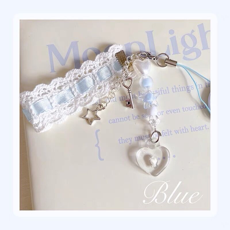 ロリータの手作りの蝶結びの愛のy2kのかわいい少女の数珠の携帯のケースのチェーンのカード帳の掛け物のカメラの装飾