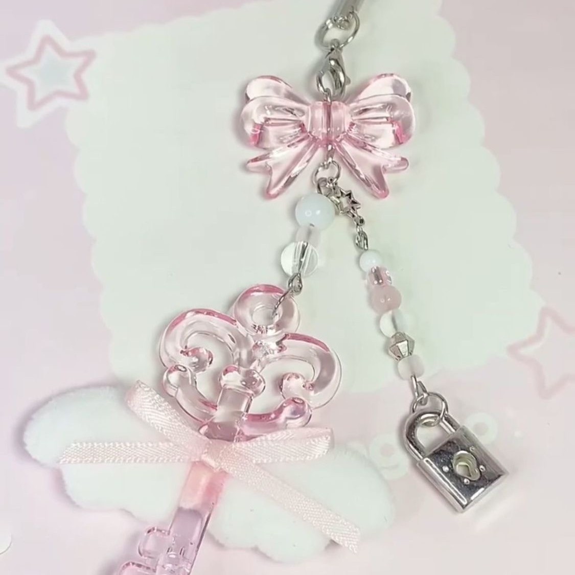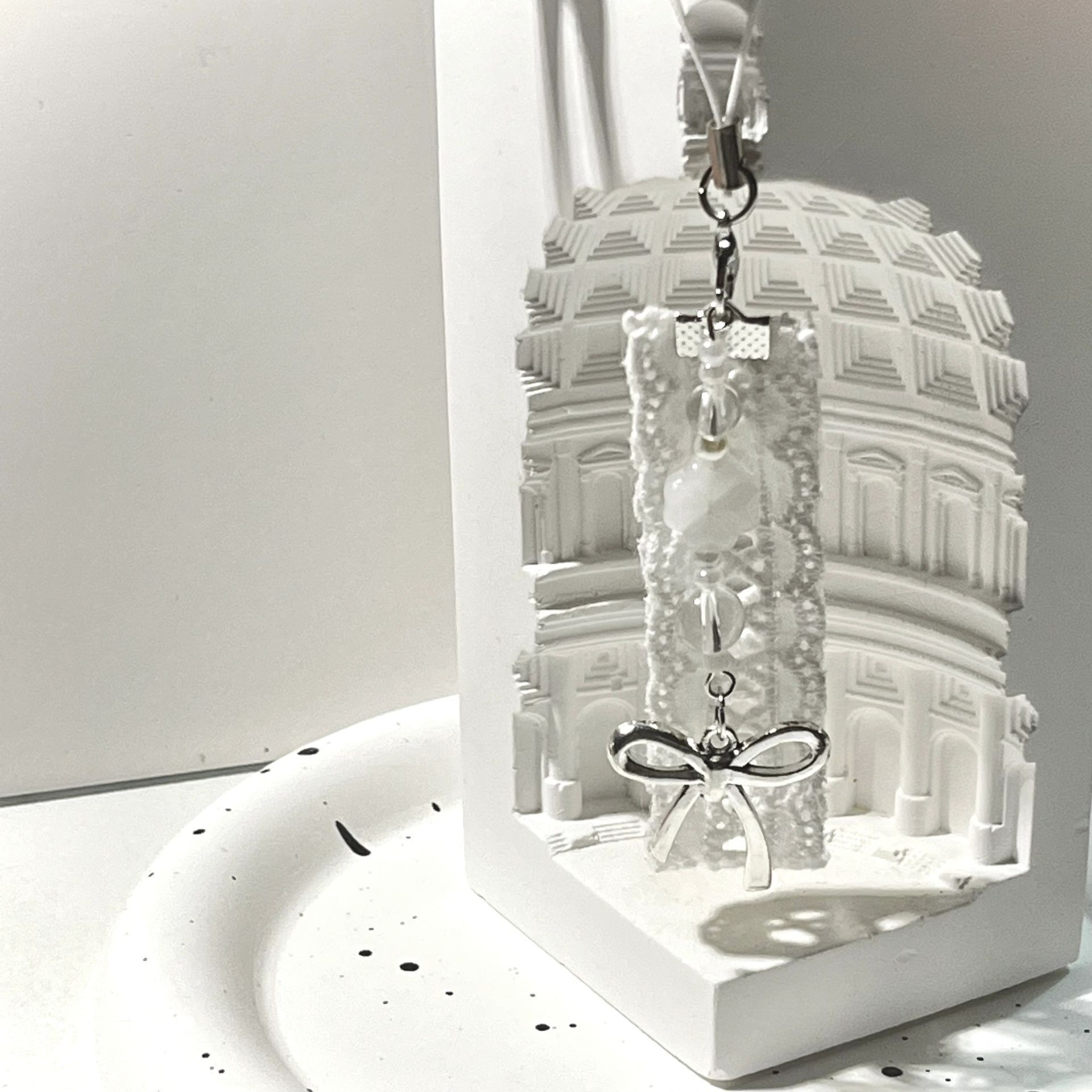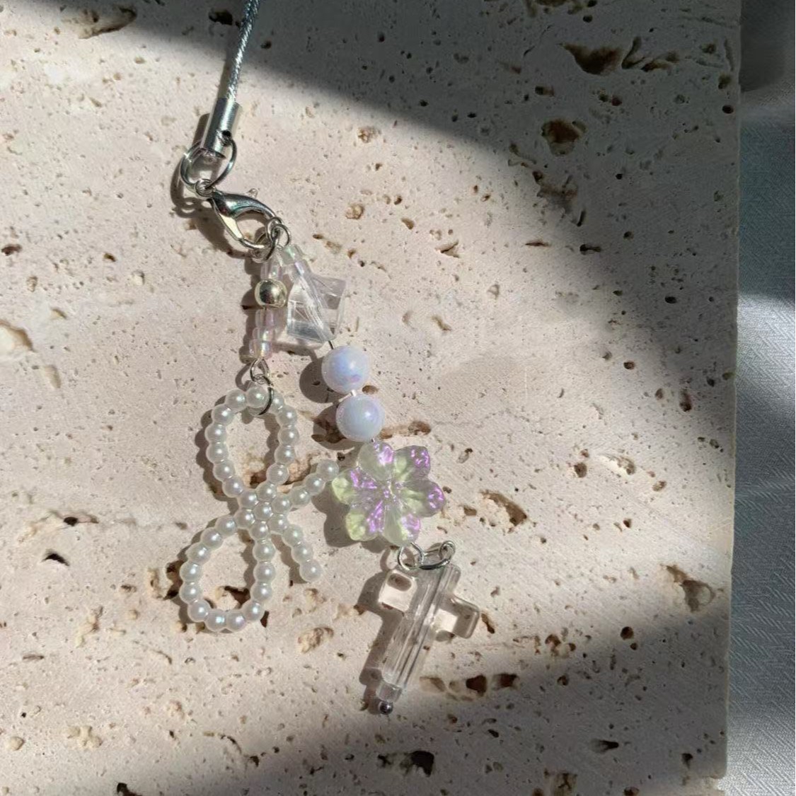 【白い少女】手作りの蝶結びの愛y 2k可愛い少女の数珠の携帯ケースのチェーンカードのペンダント