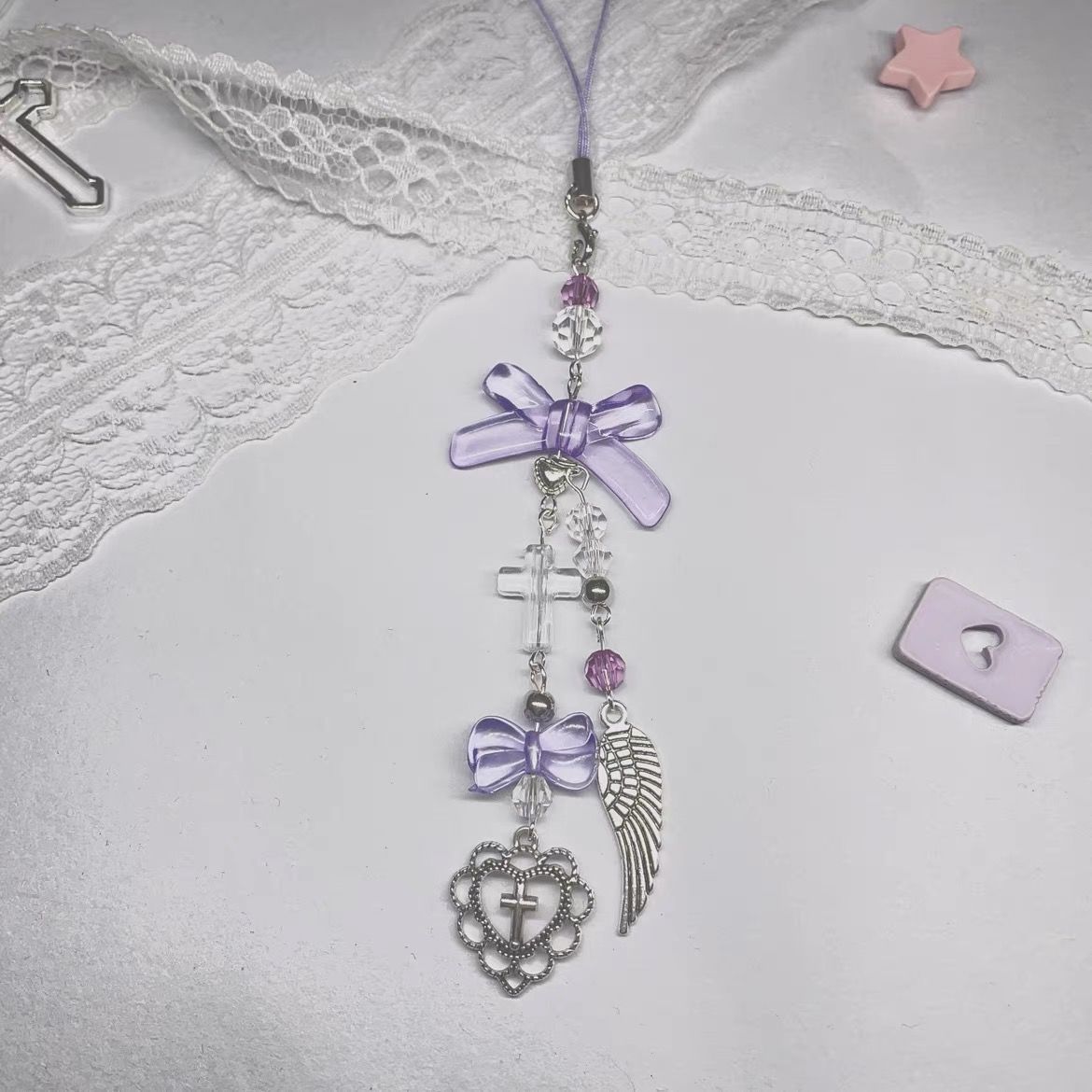 【紫の翼翼】地雷系数珠包掛本ストラップ亜文化携帯チェーン小衆孤品