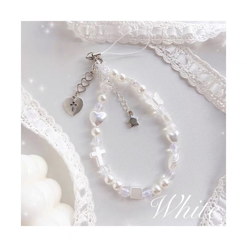 【純白精霊ミルクボール】ロリータ少女心ビーズ携帯ケースチェーン装飾ストラップ手作り飾りチェーンin