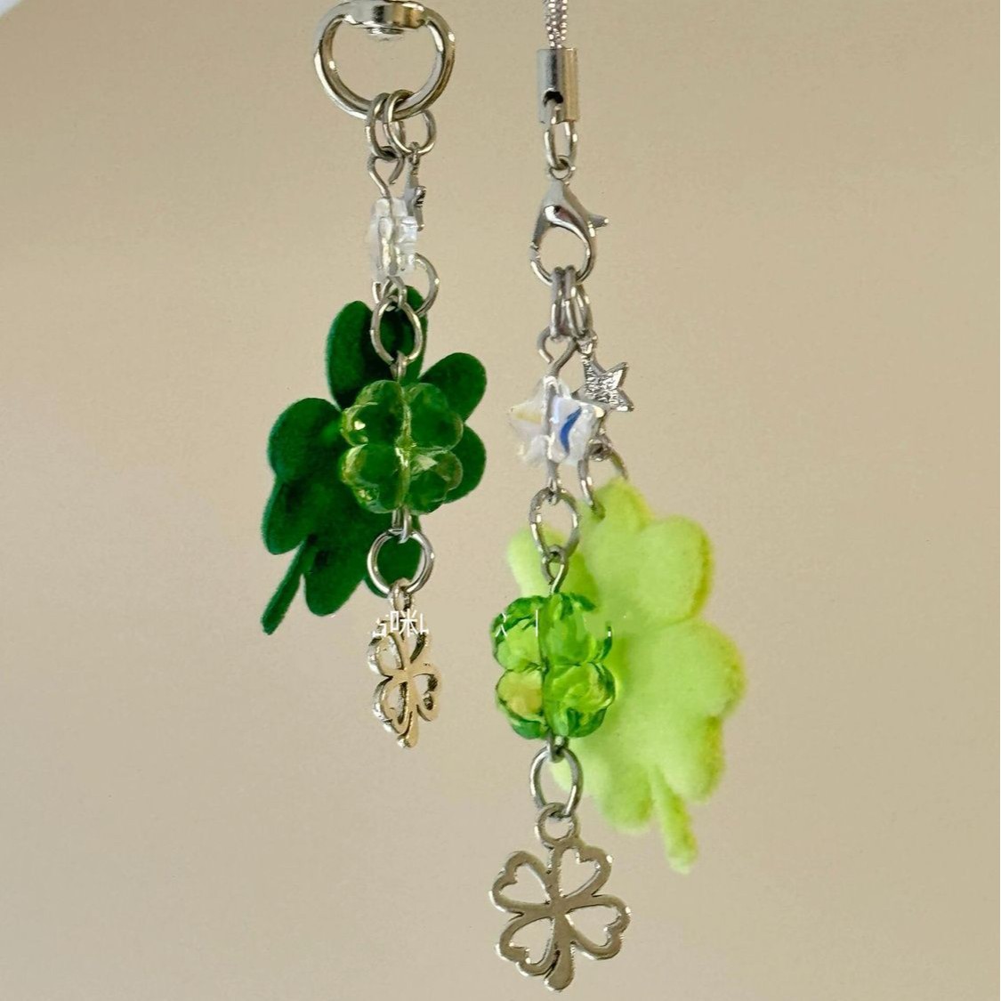 【Vibrant Four-Leaf Clover】手作りビーズ自家製ガーリーハートシンプルインキーホルダーかわいいGuben CCDペンダントロープ
