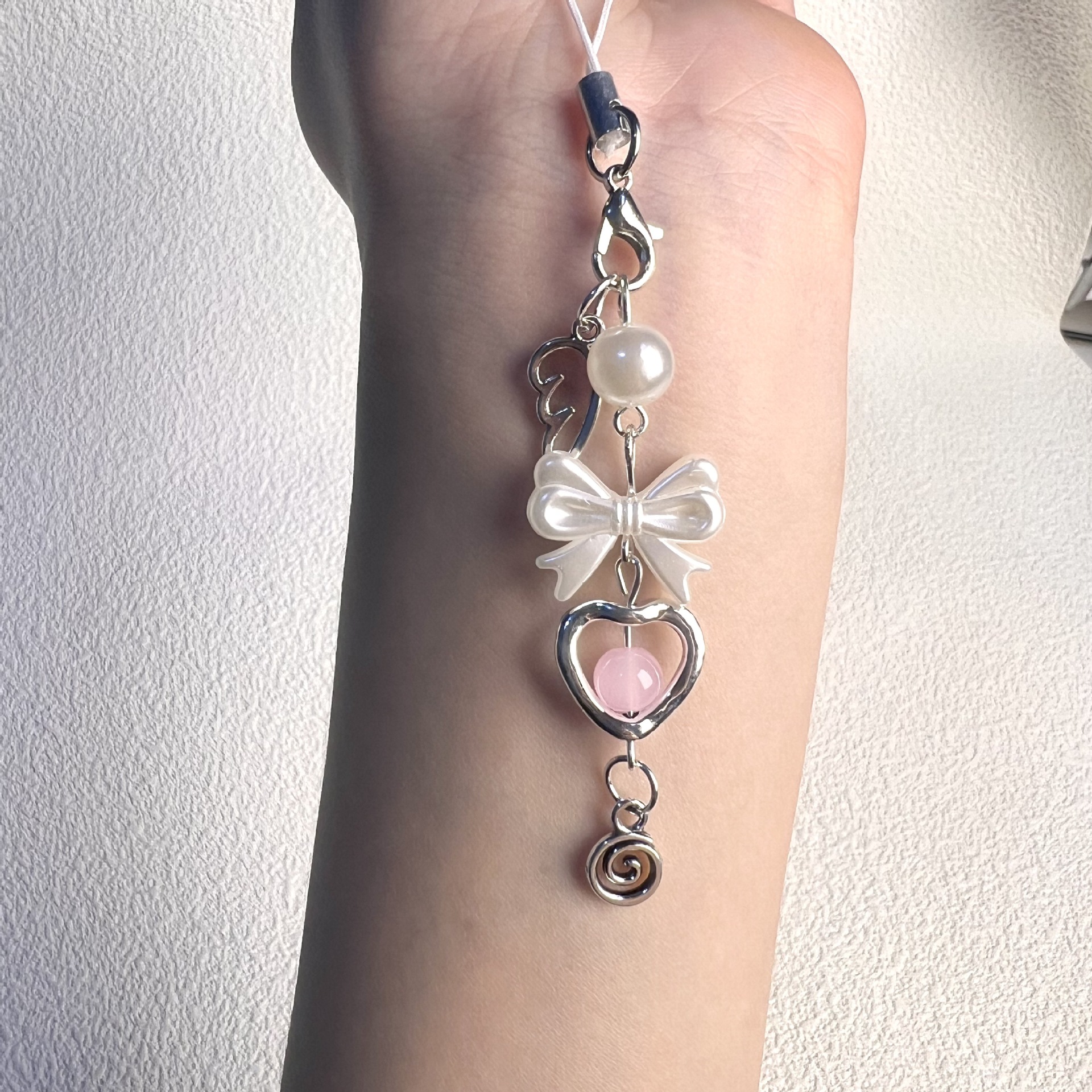 [ホワイトミストスターシー] ccdストラップ手作りビーズ自家製ガールハートインスタイルシンプルな携帯電話チェーンバッグペンダント