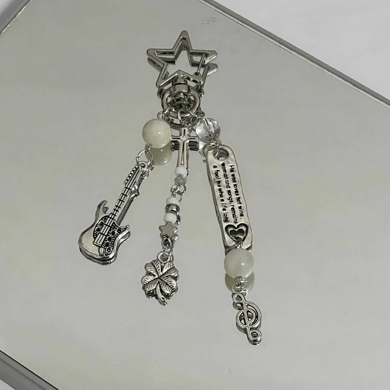 【銀色エレキギター】手作りビーズ自作シンプルinsキーホルダー可愛いカチューシャ本カメラストラップ