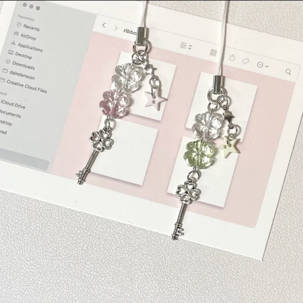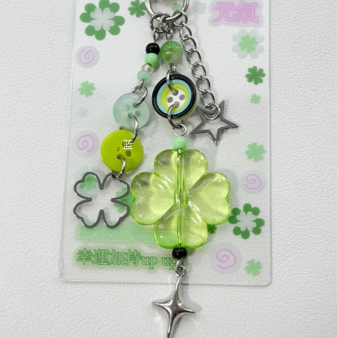【古早味ラッキー】大きなクローバーccdストラップ手作り数珠自作少女心insストラップ