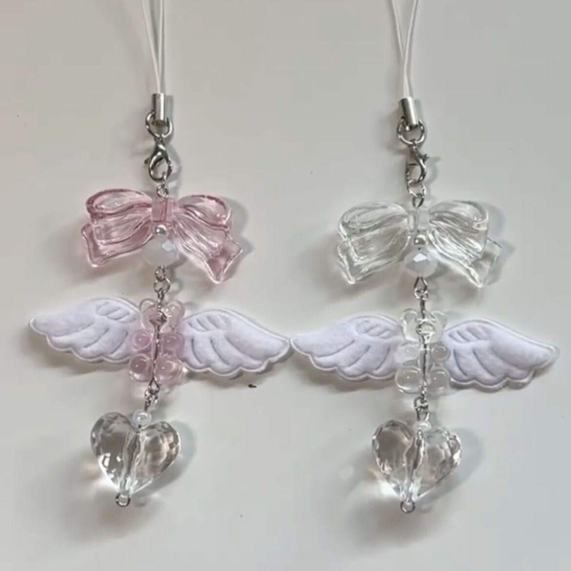 【天使の熊の羽】可愛い手作りの少女の携帯チェーンのビーズ