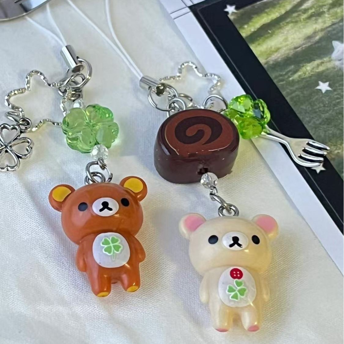 [ステッカーラッキーベア] ccd ストラップ手作りビーズ自家製ガールハート ins 携帯電話チェーンかわいい Guben ペンダント