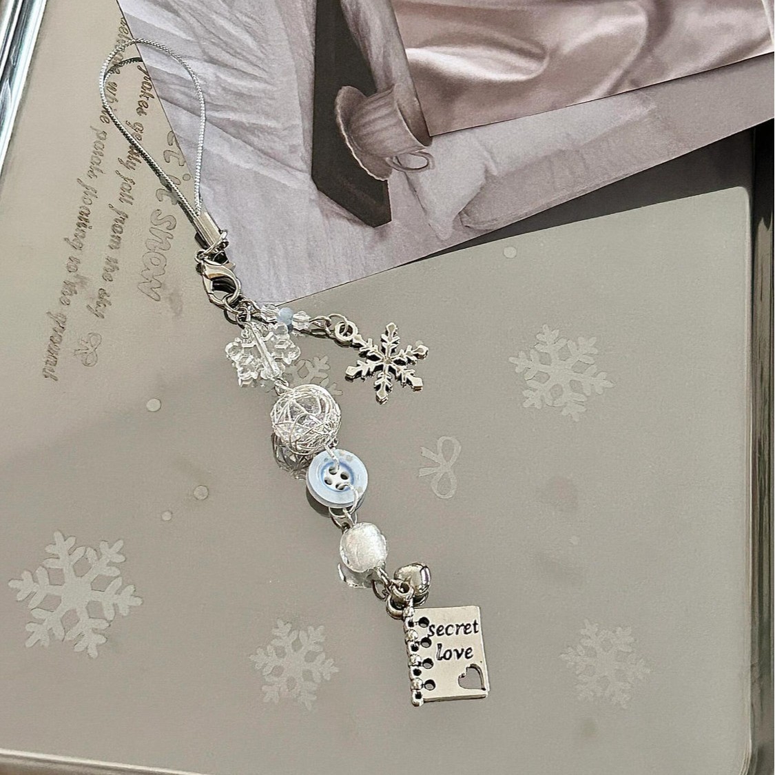 【白い毛玉純潔系】雪花可愛い少女心ビーズストラップ