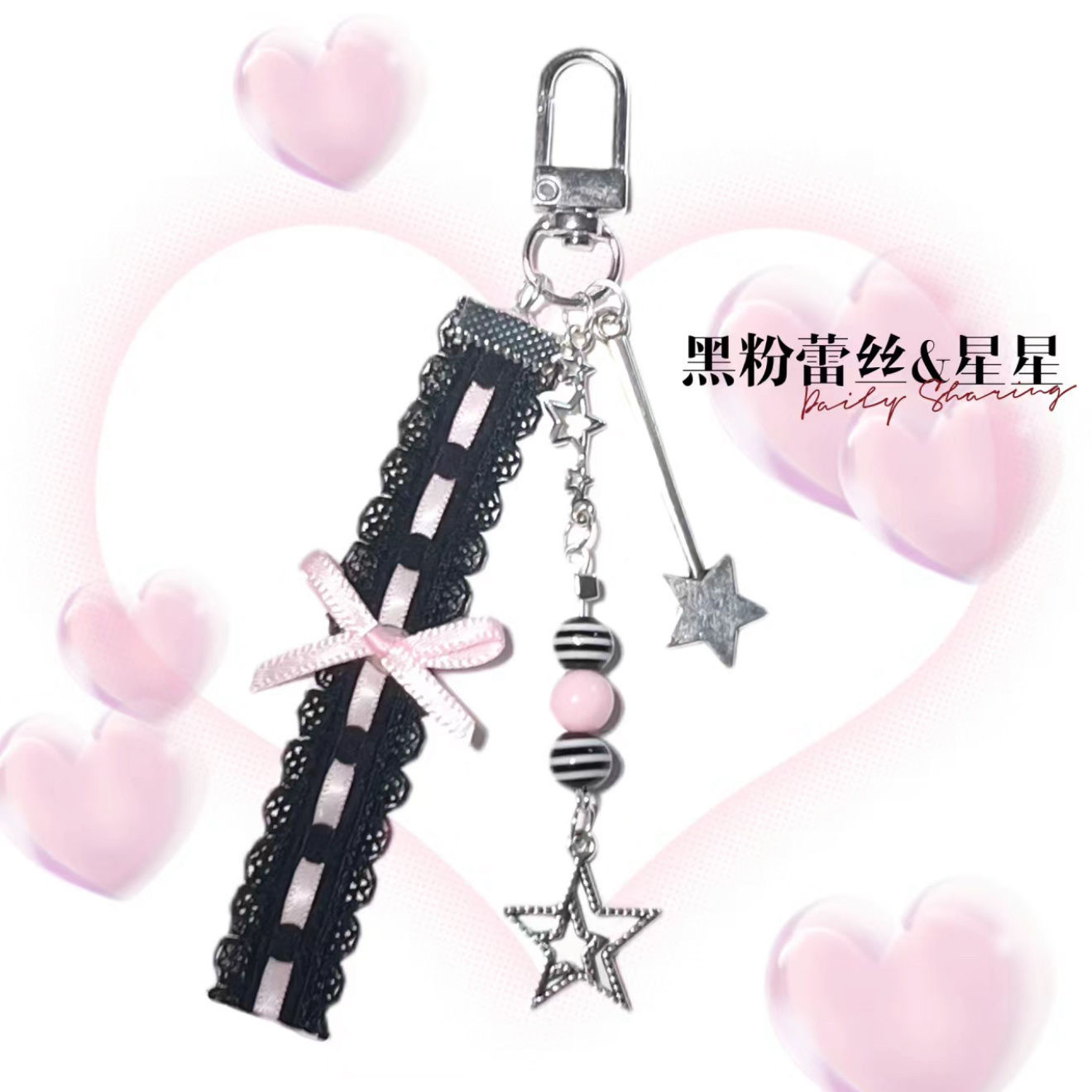 【ブラックピンクスターズ】ccd手作りビーズ自家製ガールハートインキーホルダーグベンインペンダント