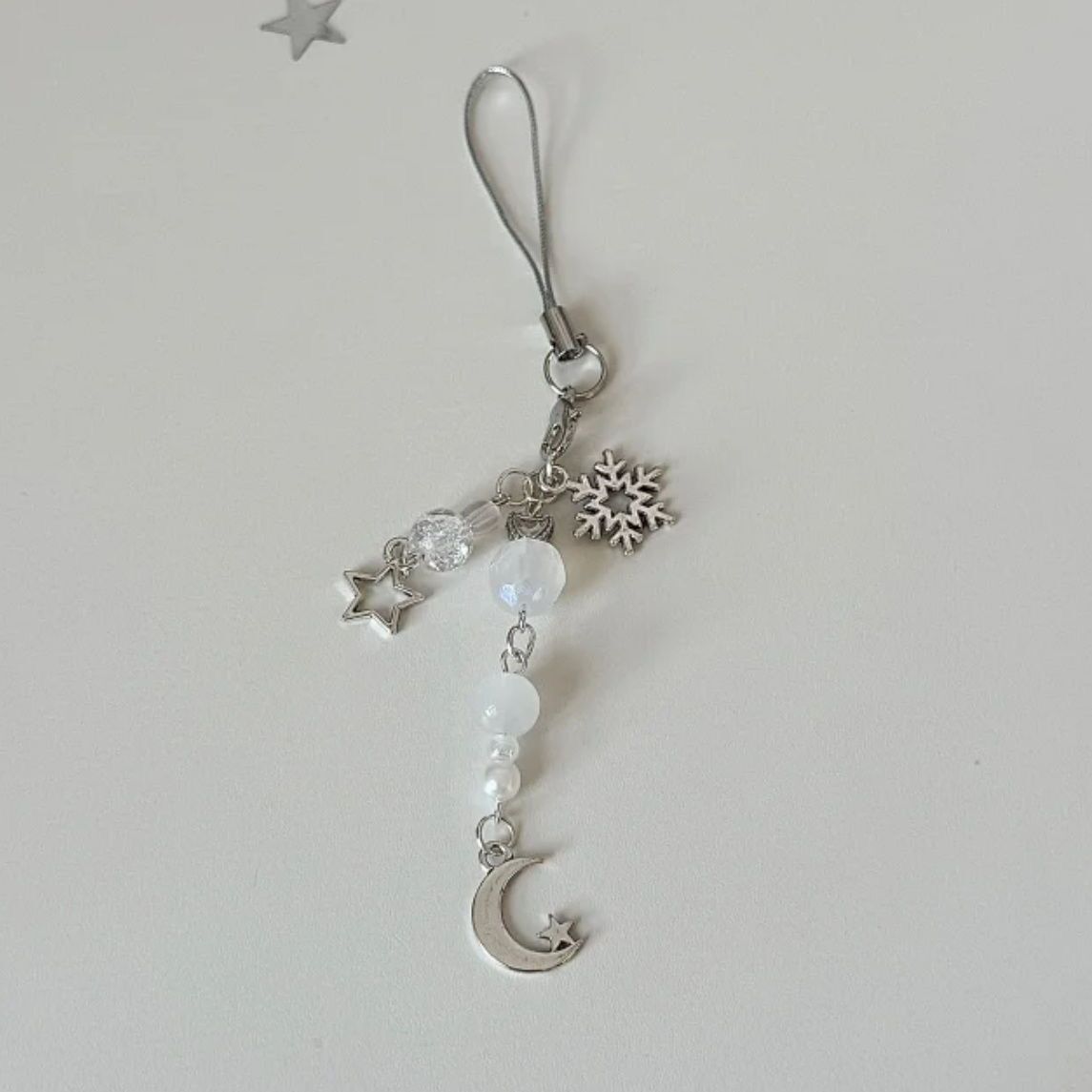 【月の雪の下】月の雪の要素の手作りの数珠の自作のins風の携帯のチェーンのかわいい本のペンダント