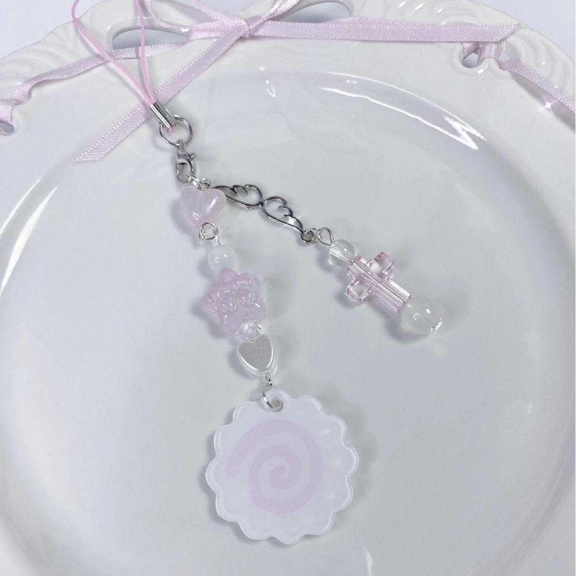 【小さなktキー】ハンドメイドビーズ乙女心ストラップグッ本カードブックストラップバッグccdストラップインスタ