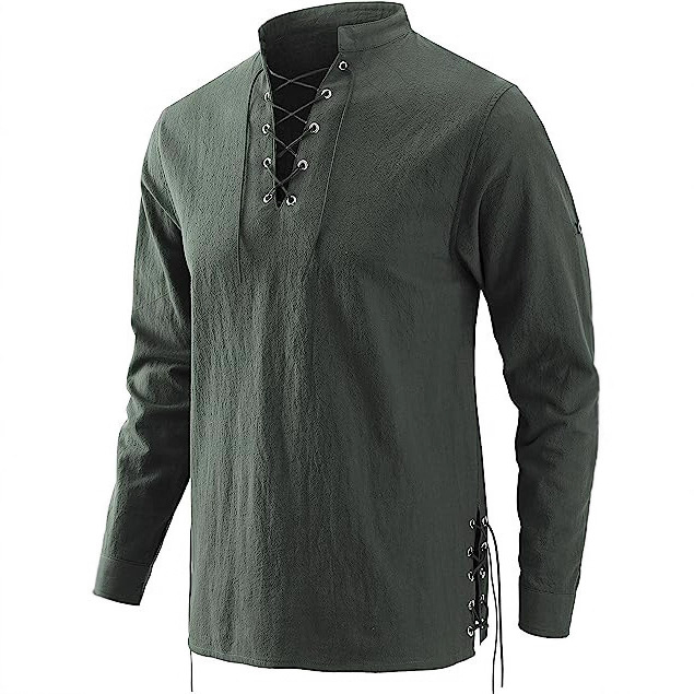 24 メンズ長袖新ヨーロッパサイズコットンとリネンヘンリーシャツカジュアル多用途ビーチソリッドカラーツーピースセット在庫あり