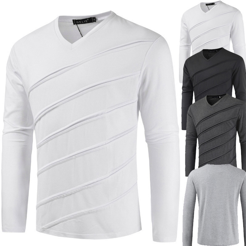 2024夏クロスボーダーebayヨーロッパコードファッションカジュアル新型透かし彫りファッションしわ長袖vネック純色tシャツ