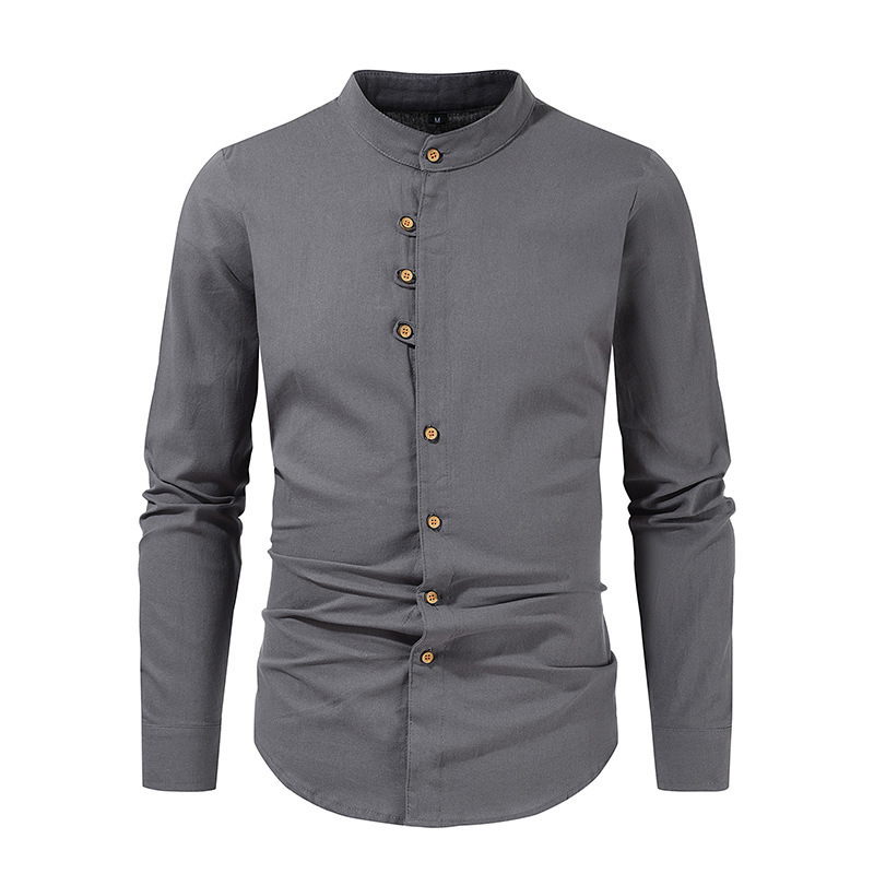 男性の新型アマゾン男性綿麻ヘンリーシャツ長袖対外貿易レジャービーチ立襟シャツヨーロッパコード