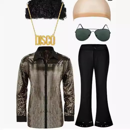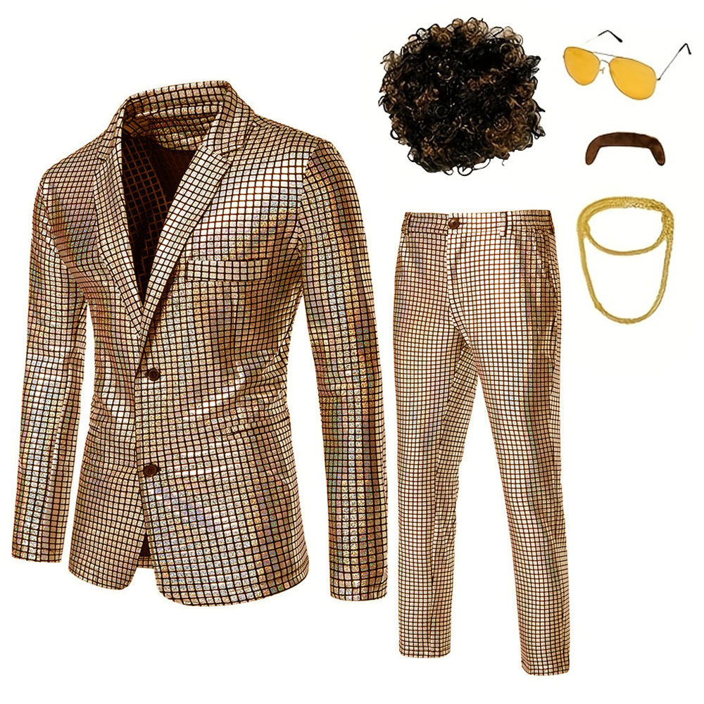 2025 春の新作 Amazon メンズ 70 年代ディスコ スパンコール トップ フレア パンツ セット