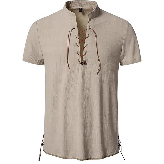2025 メンズアマゾンメンズシャツ改良ヘンリーシャツ半袖ヒッピーカジュアルビーチスタンドカラーシャツヨーロッパサイズ